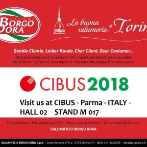 Trovate lo stand Borgo Dora al Cibus 2018 Salone Internazionale dell’alimentazione – Padiglione 2 – Stand M017 .